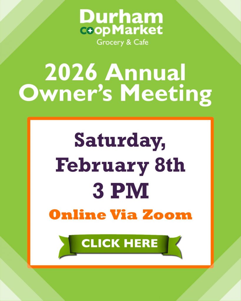 At Durham Co+op Market, your voice is heard. Visit us today to explore our wide selection or learn more about becoming an owner. Together, we can nourish a stronger community.