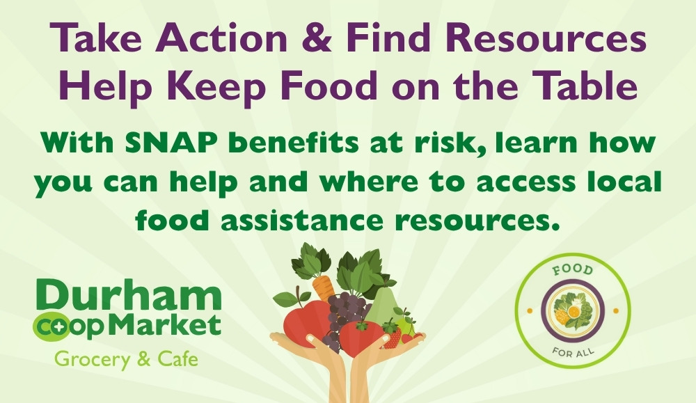 At The Durham Co+op, we know that many in our community may be impacted by temporary changes to SNAP and other assistance programs starting Nov I st.